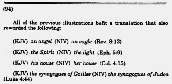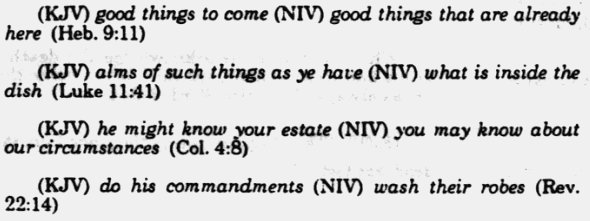 The linguistically-pleasant Todays English Version (TEV), New International Version (NIV), The Message, and other similar-idea post-NASV QUASI-translations (the New King James Version excepted) of The HOLY BIBLE state the following or significantly similar variations of: